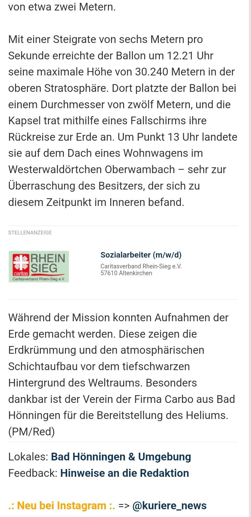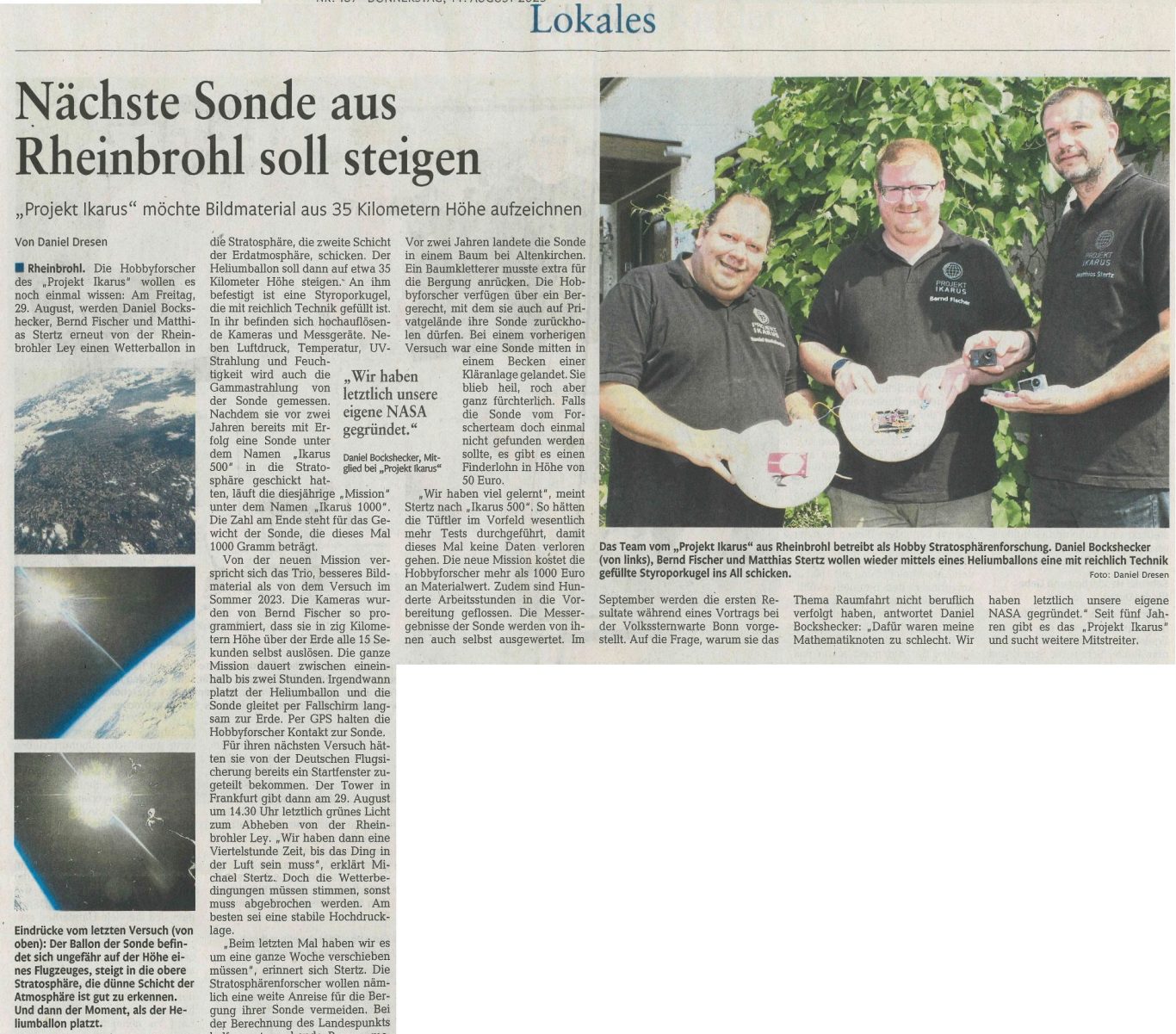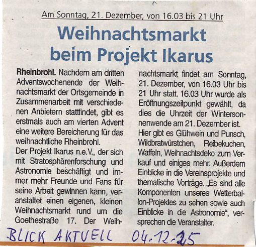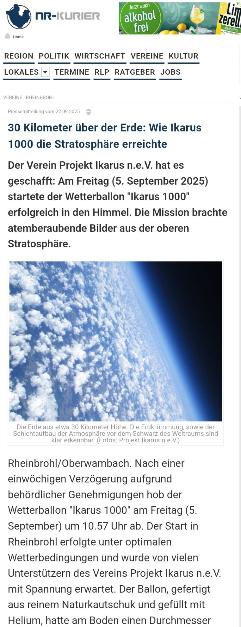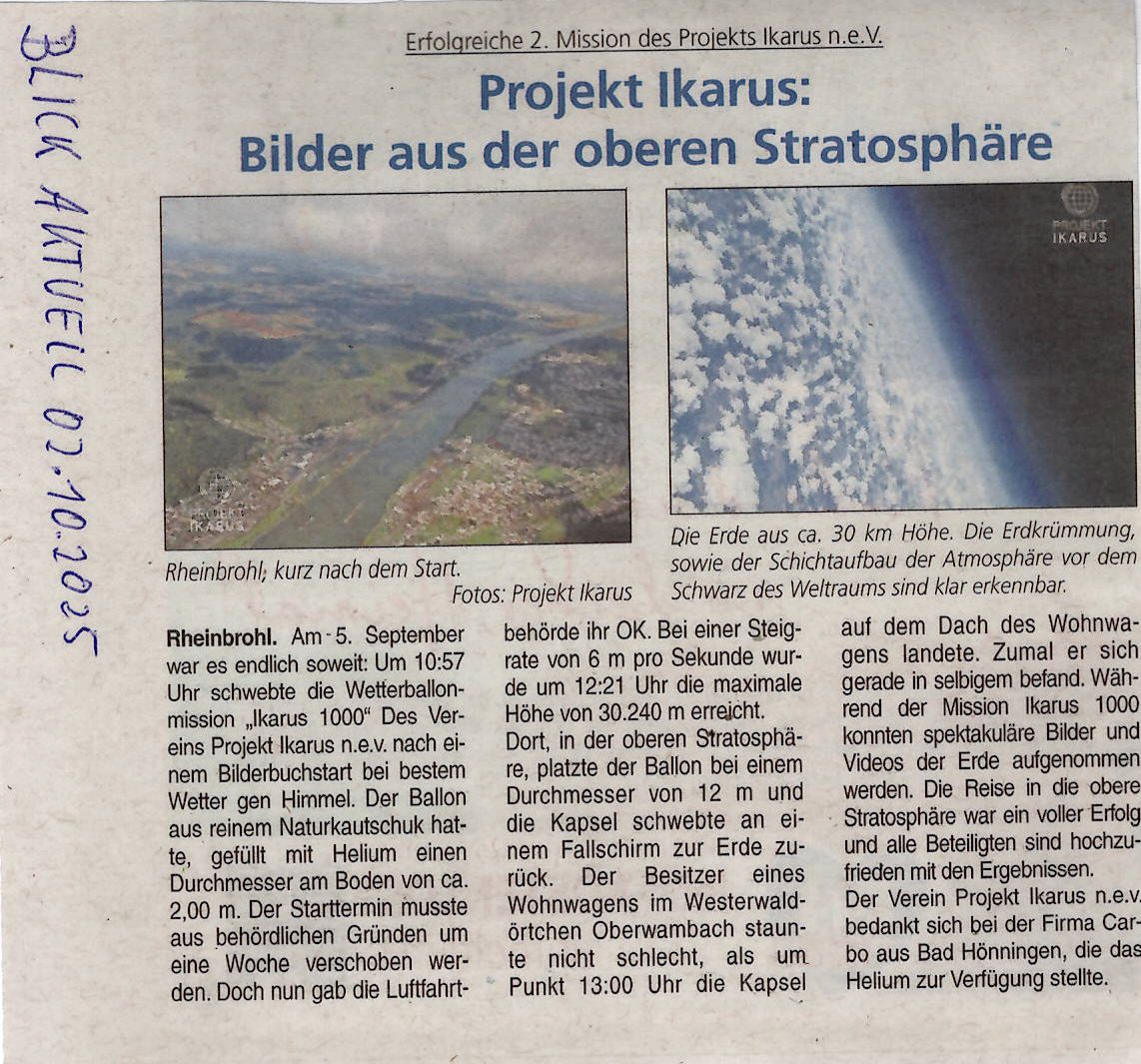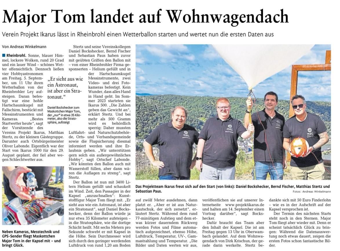 Ein gut geschriebener Artikel über Projekt Ikarus in der "Rhein-Zeitung".