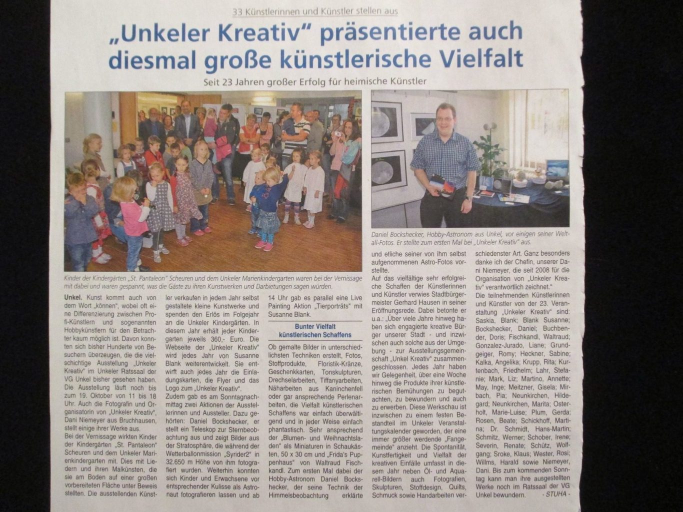Im Blick Unkel, anlässlich meiner Ausstellung in der Kunstausstellung Unkeler Kreativ.