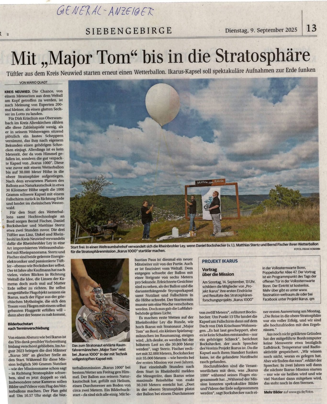 Ein gut Geschriebener Artikel über Projekt Ikarus im "General-Anzeiger"